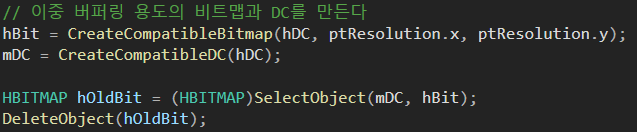 ๊ฐ์ ํด์๋ ํฌ๊ธฐ์ ๋นํธ๋งต์ ํ๋ ๋ง๋ค๊ณ ์ด ํธ๋ค ์์ด๋๋ฅผ ๋ฐ์, ์ด ๋นํธ๋งต์ ์๋๋ก ํ๋ DC๋ฅผ ์์ฑํ๋ค. ์ด์ค ๋ฒํผ๋ง์ ๊ตฌํํ ๋, ์๋ก ์์ฑ๋ ๋นํธ๋งต์ DC์ ์ ํํ์ฌ ๊ทธ ๋นํธ๋งต์ ๊ทธ๋ฆผ์ ๊ทธ๋ฆฌ๋๋ก ์ค์ ํ๋ ๊ฒ์ด ํ์ํ๋ฐ ์ด ๊ณผ์ ์์ ์ด์ ์ ์ ํ๋ ๋นํธ๋งต์ ๋ฐํ๋ฐ์, ์ฌ์ฉ์ด ๋๋ ํ์๋ ๋ฉ๋ชจ๋ฆฌ ๋์๋ฅผ ๋ฐฉ์งํ๊ธฐ ์ํด ์ด๋ฅผ ์ญ์ ํด์ผ ํ๋ ์ผ์ ์งํํด์ผ ํ๋ค.