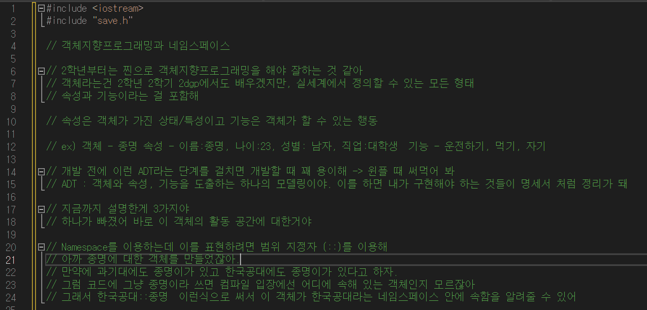 < ๊ฐ์ฒด์ ๋ค์์คํ์ด์ค์, ๊ทธ๋ฆฌ๊ณ ์ถ๋ ฅ(cout) >